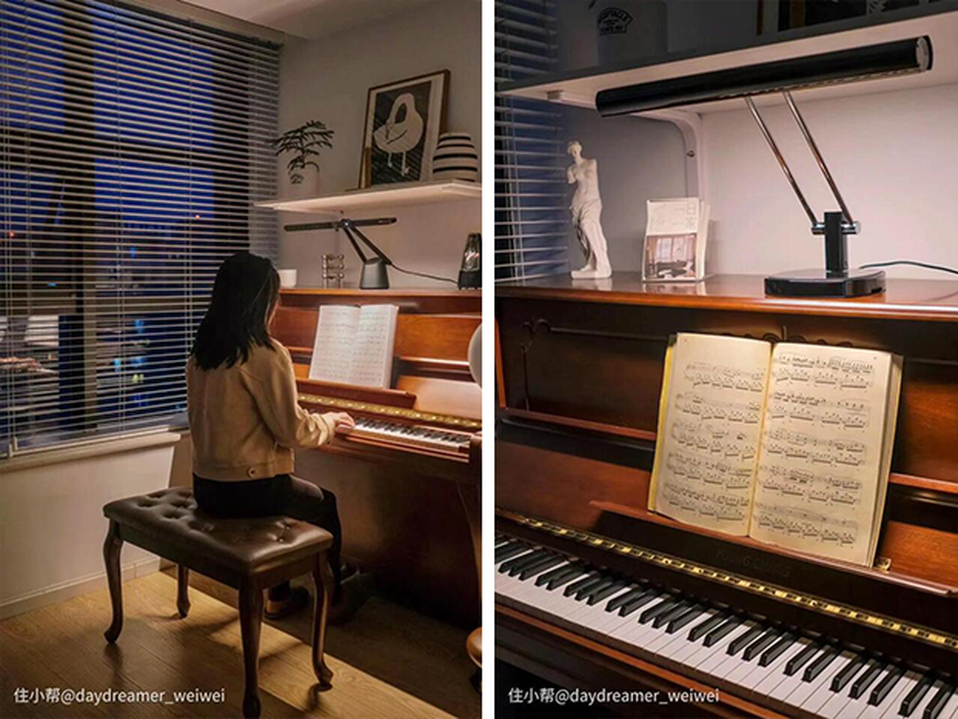 普通台灯照明范围小,用在钢琴上容易上半部分曝光过大,而下半部分不够亮,更推荐钢琴灯: