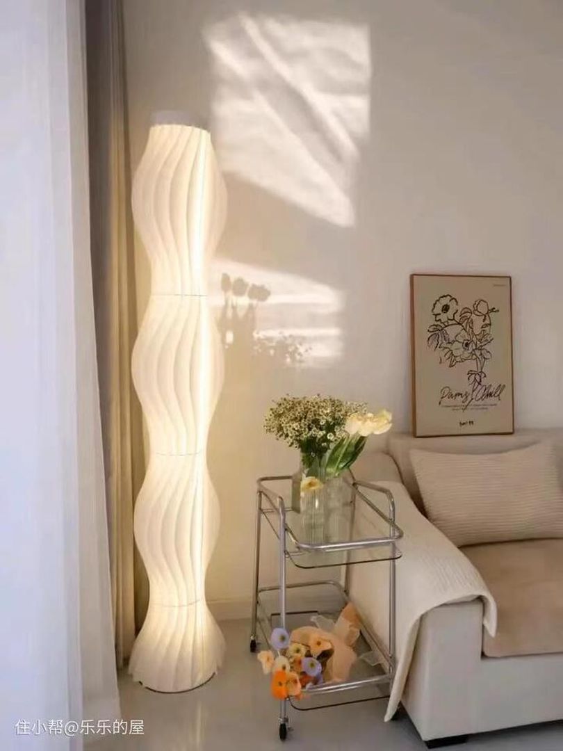 适合放在角落点缀,轻巧好移动;见光不见灯,光线柔和,不开灯时也是家里的奶油风摆件。