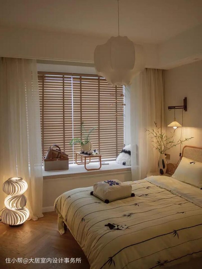 打造自然柔和的家居氛围,白色和木色更配新中式的纯净质朴,点缀黑色或者黄铜色提气。