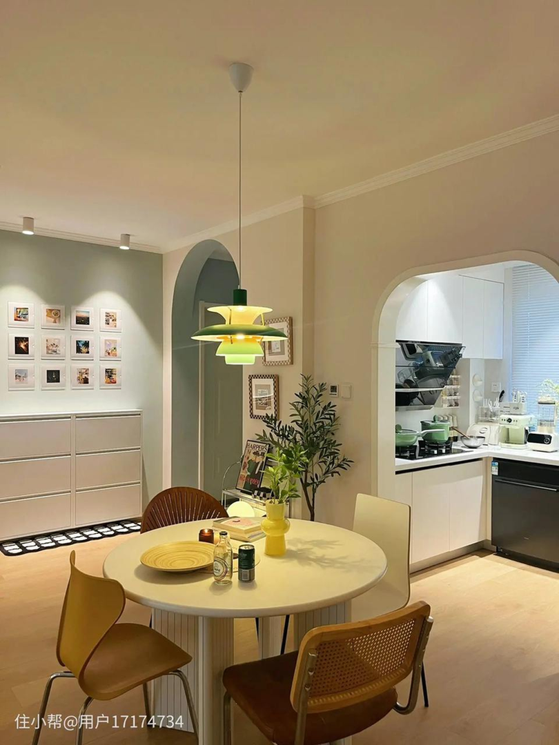 中古奶油风空间,是更柔和的米色或者奶白色,配合一些带有浪漫感灯具尤为合适。