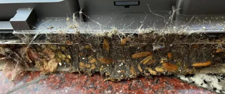 一定要确认滚刷盖和滚刷之间没有多余的空隙、滚刷和管道之间没有多余的空隙,否则就会变成这样: