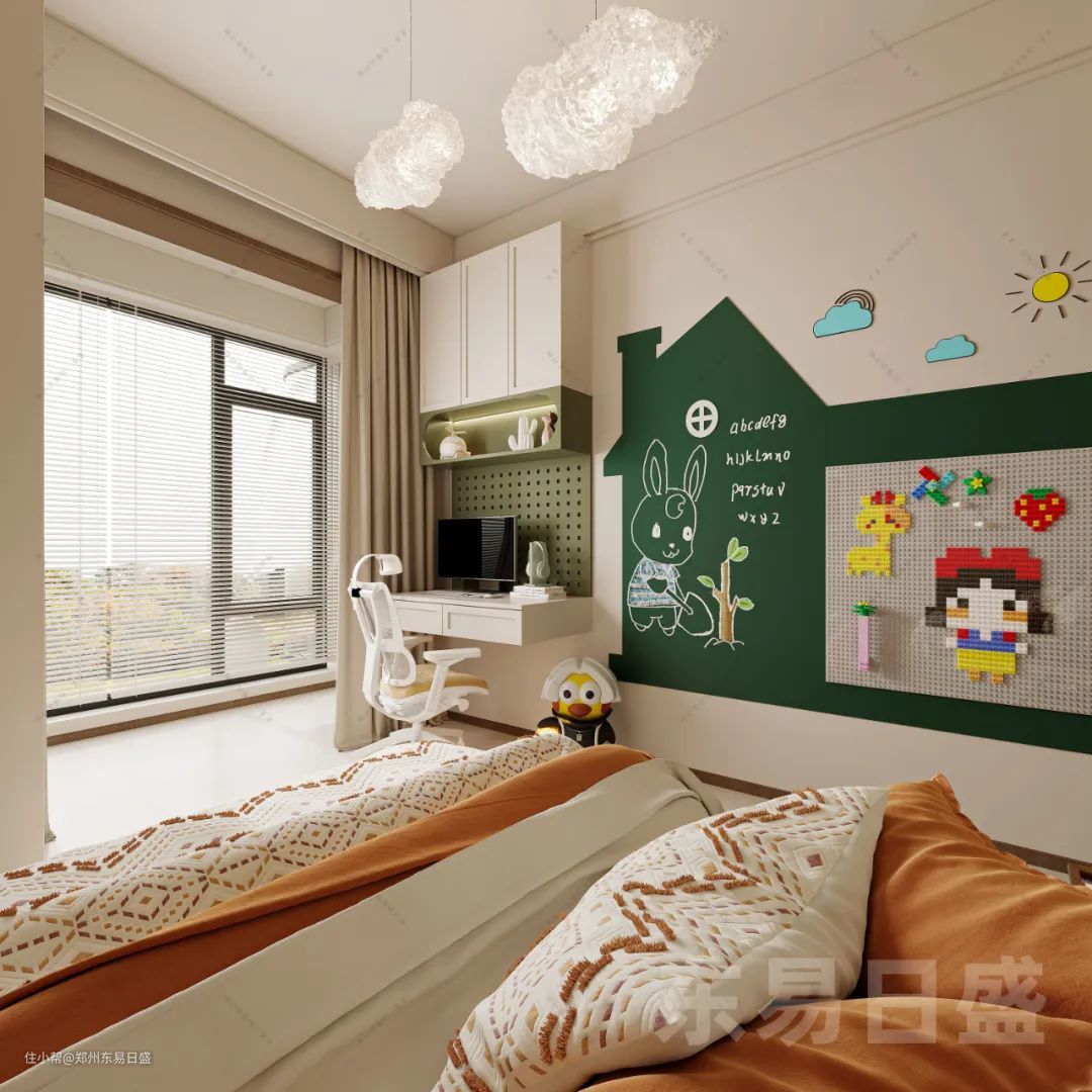 儿童设计比较童趣,让孩子在自己空间内不拘泥不无聊,大的落地窗,贯穿空间灵动便捷肆意轻松。