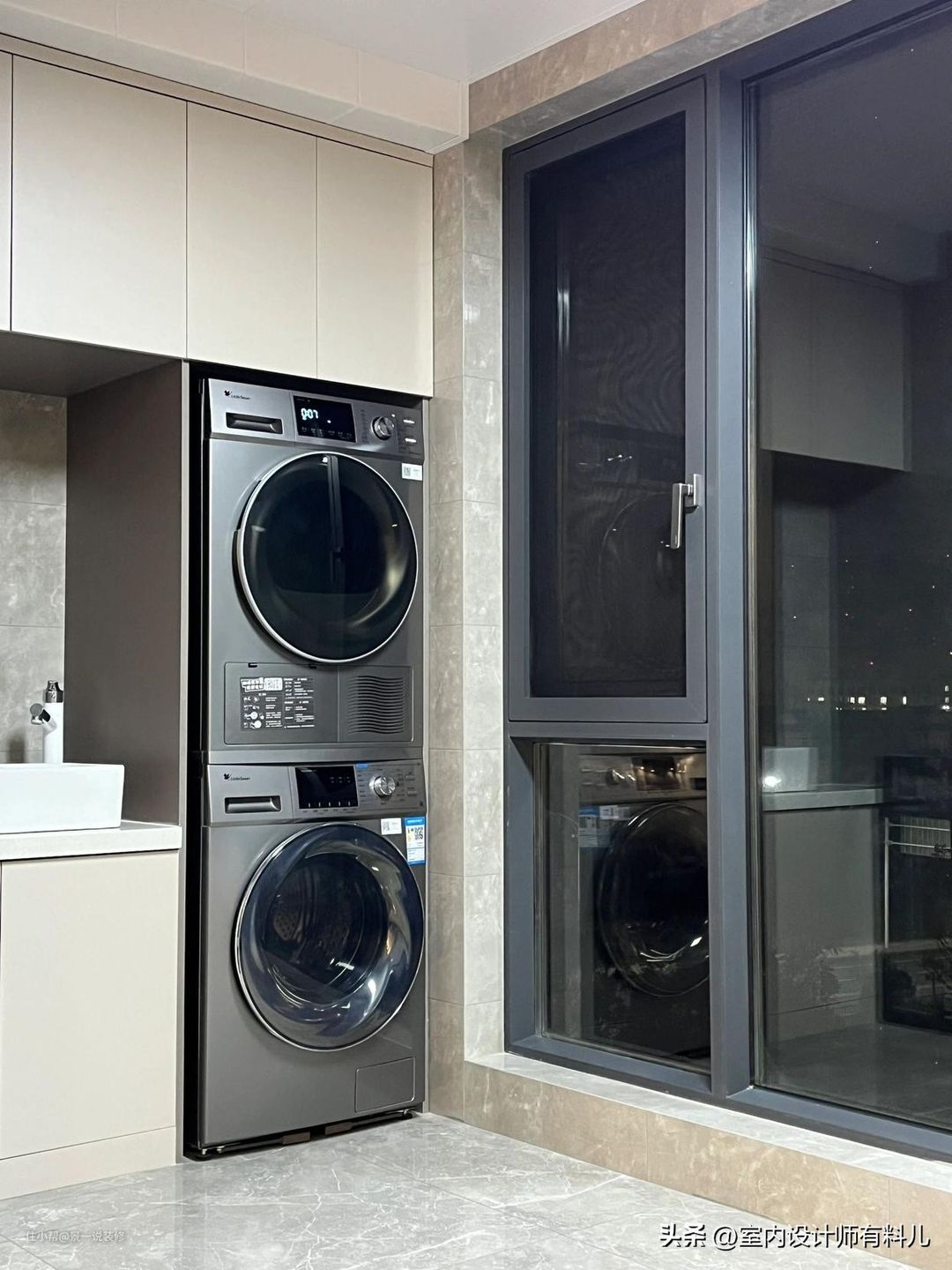 洗衣房做了家政柜,还DIY了珐琅版磁吸收纳墙,角落预留了上下水,放一个小拖把池,因为有了这个洗衣房,我家的大阳台就可以留着喝茶晒太阳!