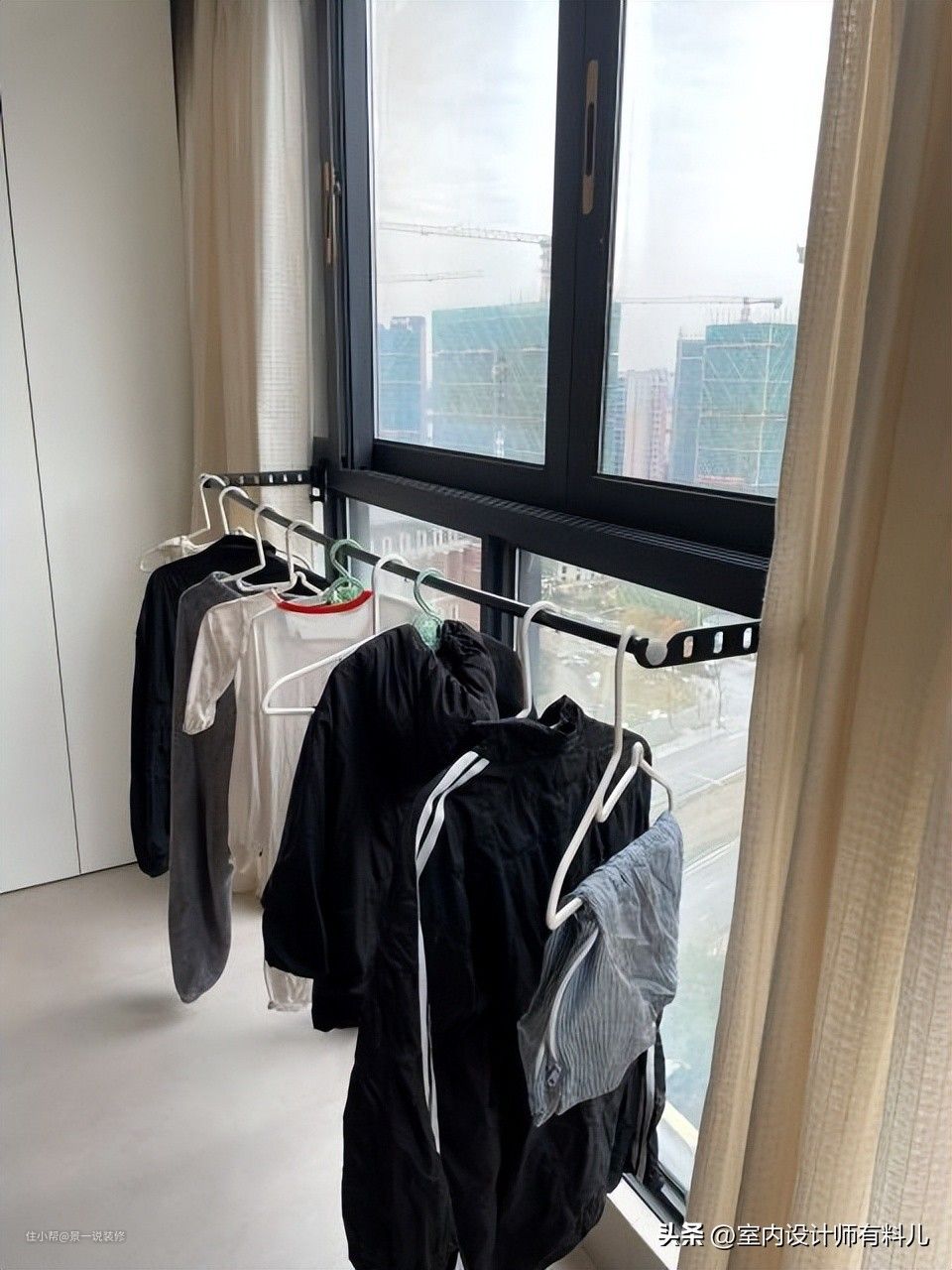 只到夏天才会晒衣服,有充满阳光的味道,再说夏天这么热,衣服被子不到半天就干了,干了就收起来,也不太会影响客厅颜值。