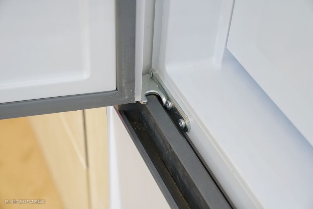 现场请教了一下工程师,薄嵌的主要秘密在于铰链设计,为了让冰箱门能够无缝开启,TCL的薄嵌冰箱采用了嵌入式铰链 ▲
