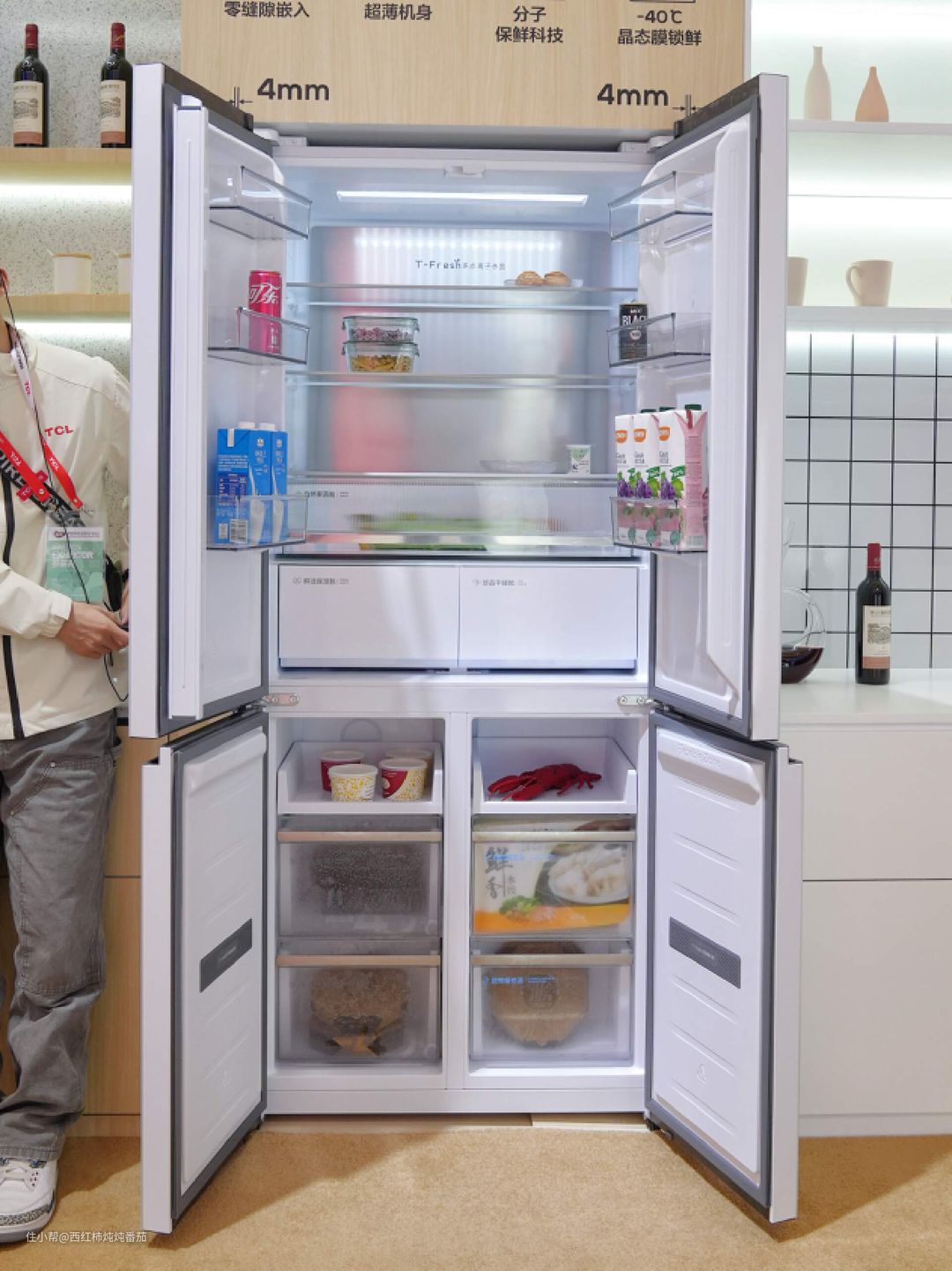 为了满足消费者的不同使用习惯,TCL还对爆款冰箱T9的开门方式进行了多元化升级,做了对开门、十字对开门以及法式四门多种不同设计,算是给足了诚意 ▲