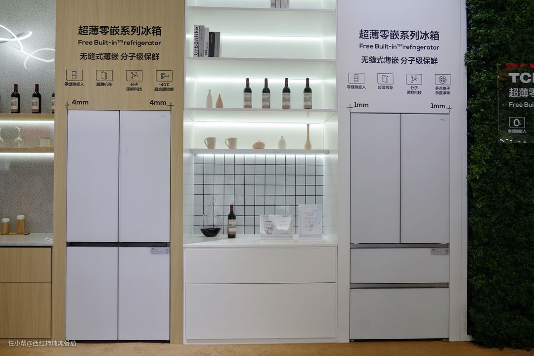 TCL的薄嵌冰箱目前有两档标准,一档是 4mm零嵌,另一档则是极致到顶级的 1mm零嵌 ▲