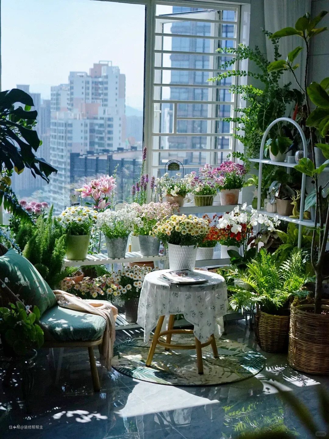 2、花园阳台:在阳台上种植各种花卉、绿植,打造一个小花园。您可以设置花架、花坛,增添一些园艺装饰品,营造出清新自然的氛围。
