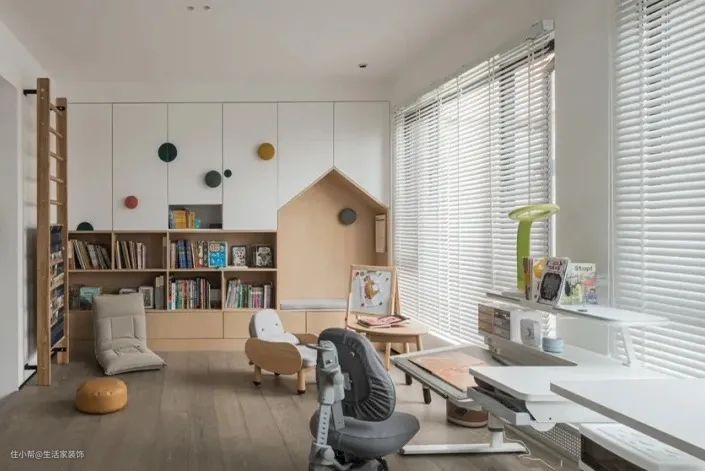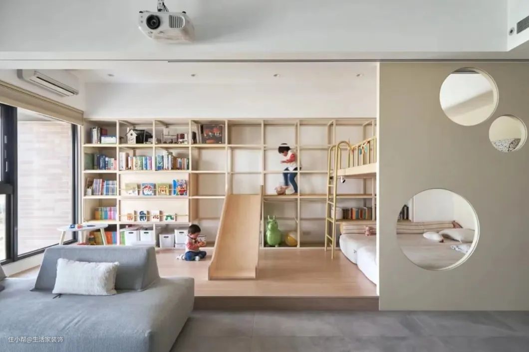 还可以借助半开放式布局,打通两个相邻空间,比如儿童房和客厅,让孩子和大人的生活产生互动,但又能保持相互独立,满足未来的成长需求。