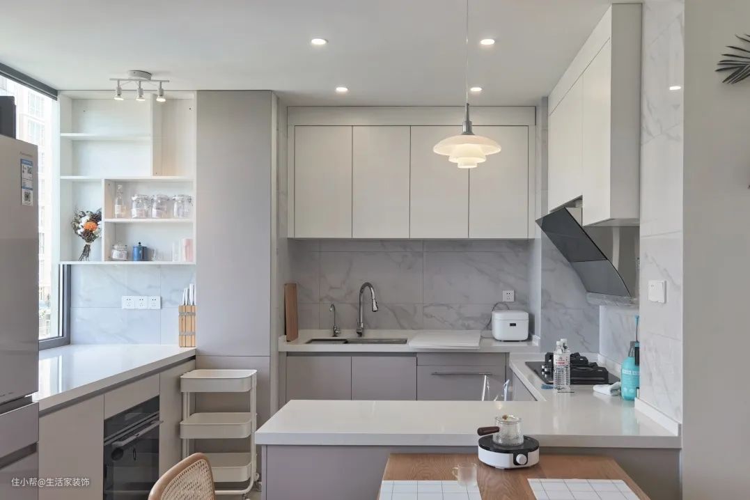 其实,打造开放式或半开放式的餐厨,也可以让孩子与厨房建立联系。利用岛台、吧台与餐厅的组合,将餐桌打造成孩子的娱乐空间,平日休闲时光,父母还可以和孩子一起在岛台制作简餐,让孩子体验烹饪的乐趣,度过愉快的亲子时光。