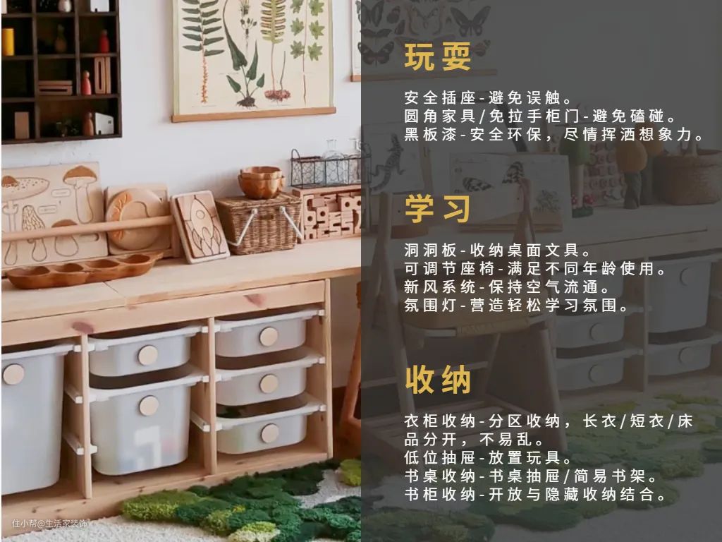 需要规划一个娱乐区,供孩子看书、玩耍,同时可以搭配黑板墙,让孩子自由挥洒灵感。其次,我们还要考虑玩耍区的安全配置,让孩子可以健康快乐地成长。