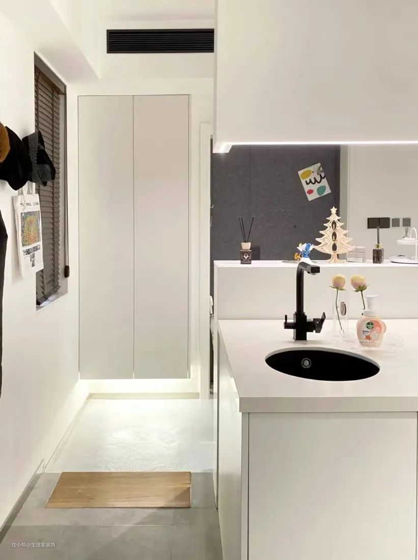 也可以在玄关设置洗手台,让孩子养成良好习惯,同时防止细菌在室内传播。