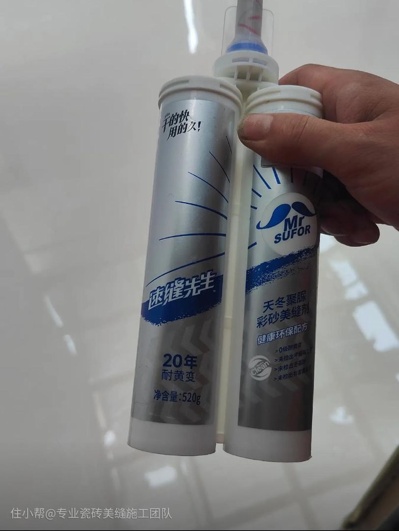 美缝剂由树脂和固化剂两部分组成,使用时再进行混合,有较多的颜色选择,性能也明显提升。
