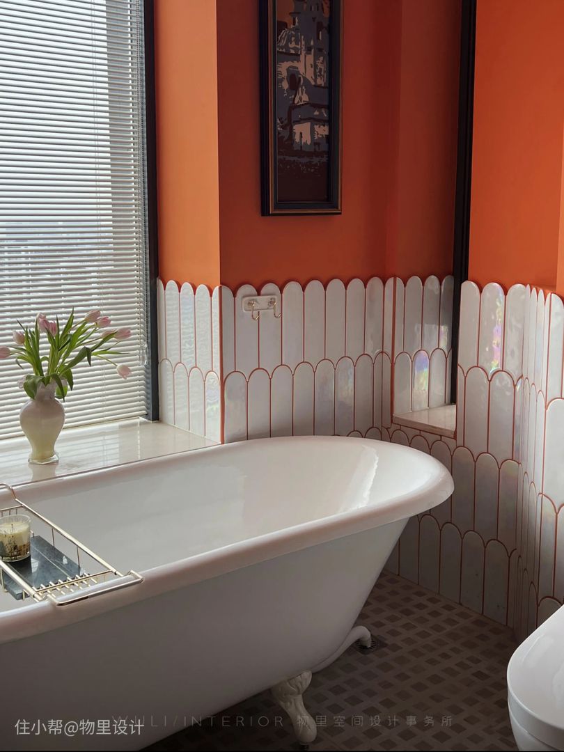 鱼鳞砖选相邻墙壁的颜色作为美缝颜色,相得益彰。