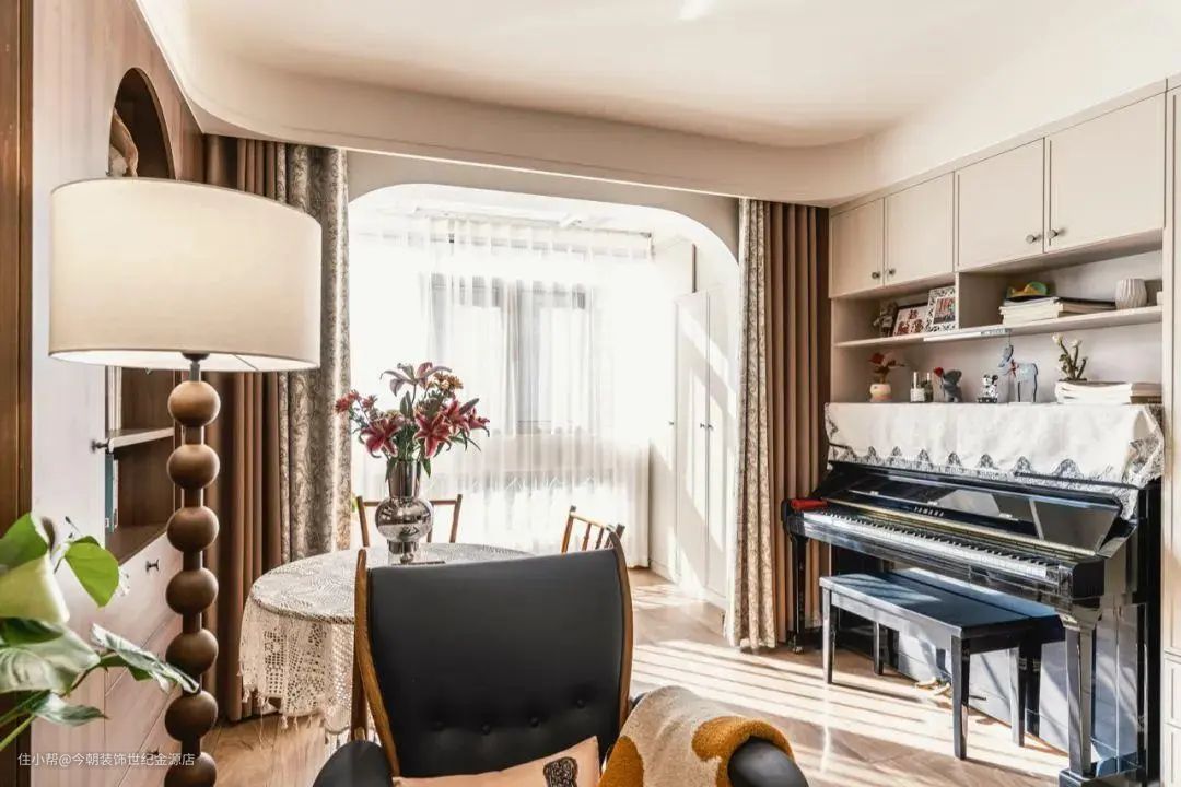 除了拱门,您还可以尝试将拱形元素融入壁龛、隔断墙等其他空间设计中,以增强整体的复古风格。拱形装饰窗、镜、柜子和床背等都是增添空间魅力的好选择。