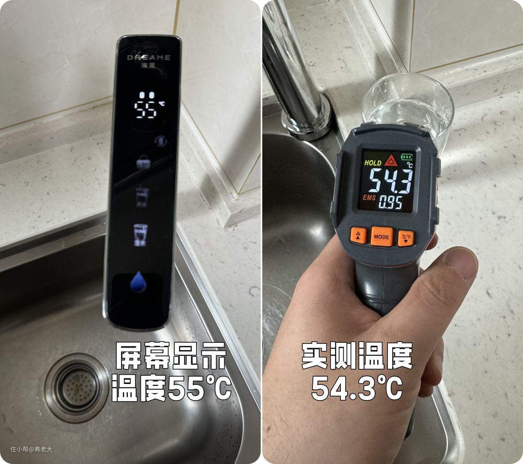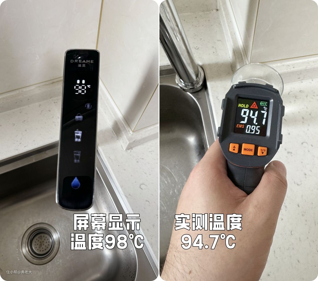 以前使用普通净水器,楼主一家沿袭着先滤水、再烧沸、后冷却的饮水习惯,殊不知这种生活方式有多么繁琐低效。当用上追觅U20厨下净水器之后,常温、温水、沸水三档水温带来了化繁为简的奇效,满足不同场景、不同人群的多样化需求,真正为生活做减法,引领了“直饮即用”的饮水用水新时代,带来了妙不可言的生活体验。细心的楼主依旧本着“眼见为实”的原则,用测温仪对三档水温进行了实测。