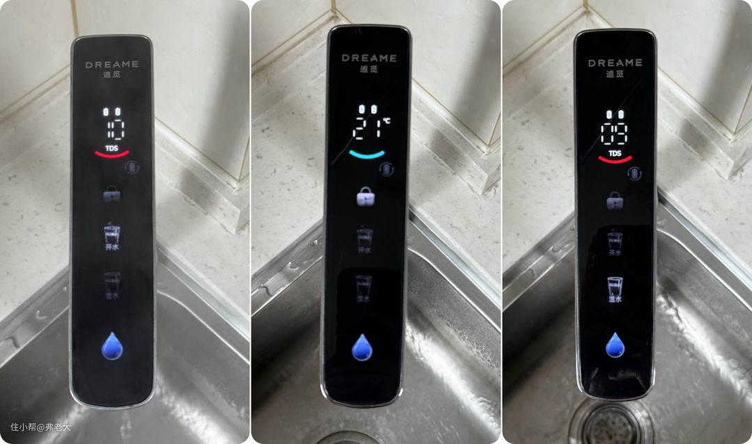 龙头上的显示屏能精简扼要地显示水温、水质、滤芯状态,各项性能参数实时显示,一目了然。