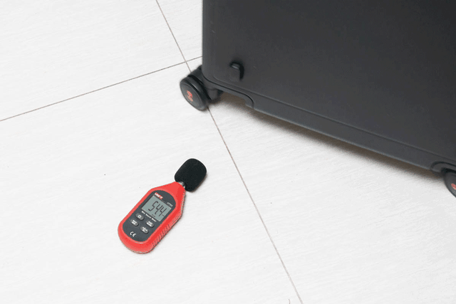而在顺滑的基础上,这款轮子的静音性也同样出色,在环境音40多分贝的情况下,轮子滑动后测试也只在50多分贝,(40分贝相当于冰箱的嗡嗡声。50-60分贝,相当于低声交谈的声音。)实际听感非常安静。