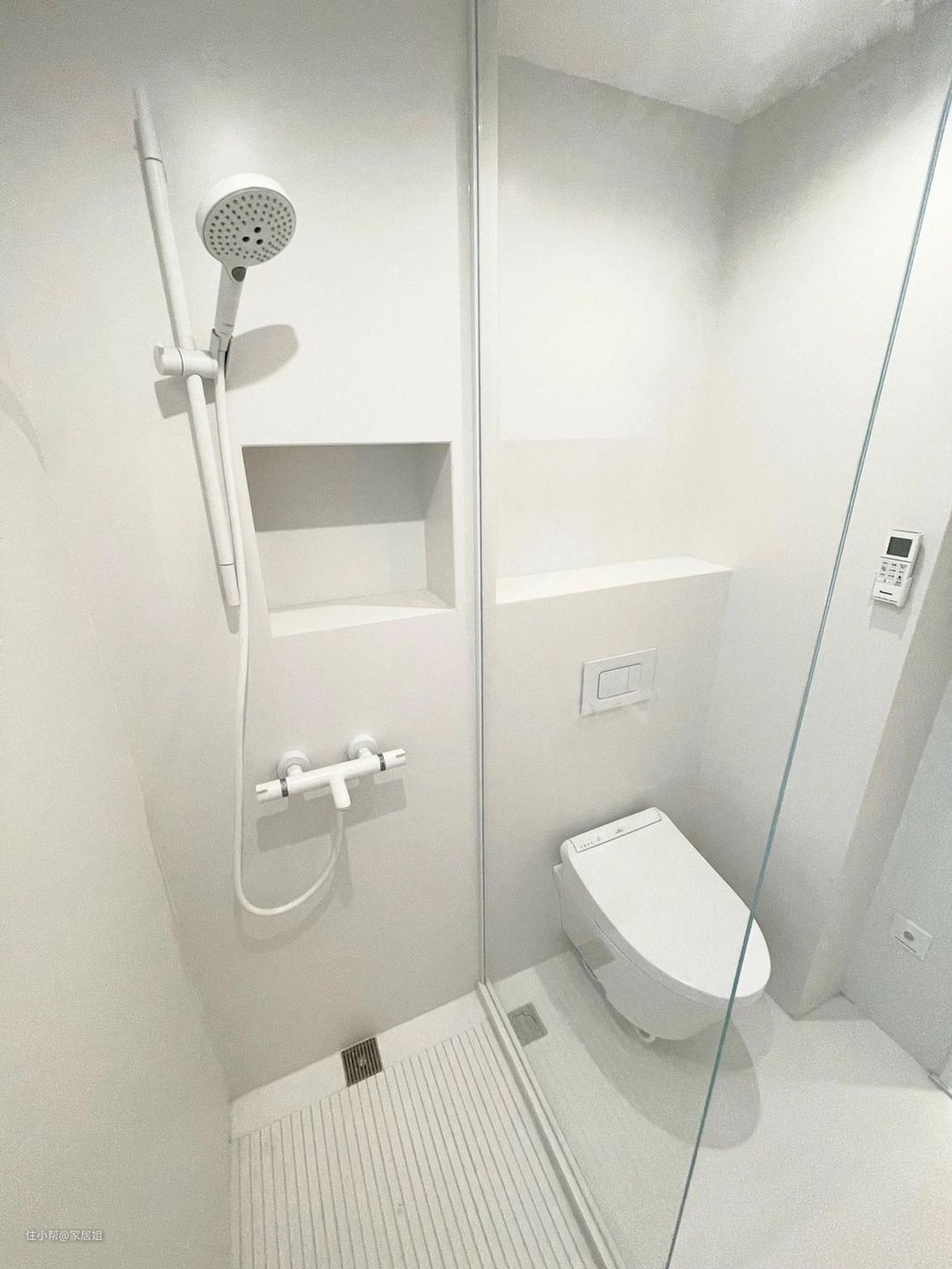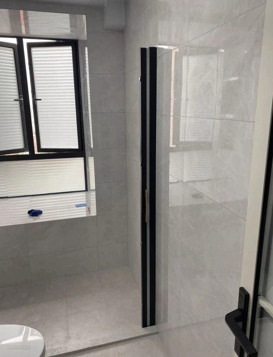 因为不喜欢全封闭的感觉所以做了一个半隔断,主要是防止洗澡水淋到马桶上。