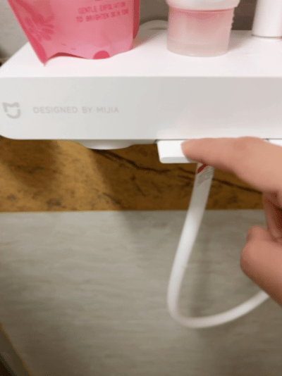 ▲现在精装修的房子很少有可用于能给水桶接水的龙头,平时家里有接水需求的话,只能一盆一盆的从水池处接,特别麻烦也特别累。米家N1花洒还有一个隐藏的下出水口,接水方便,就算是很深的桶也能很快接满。