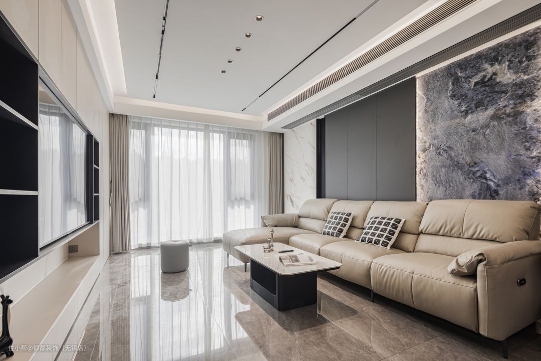 5.天花板简约处理:避免使用吊顶装饰,选择简洁的吊灯,营造大气通透感。