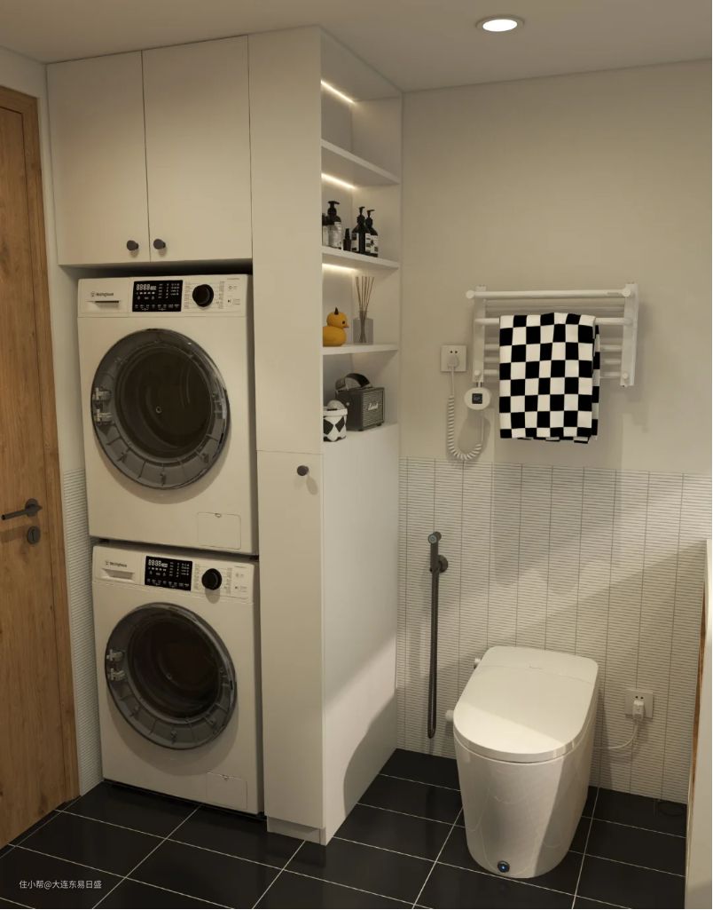 这样就算你全家四口人,一个人在洗衣服在上厕所,一个人洗澡,一个人洗漱,都是可以同时进行,大大的提升了空间的使用感。