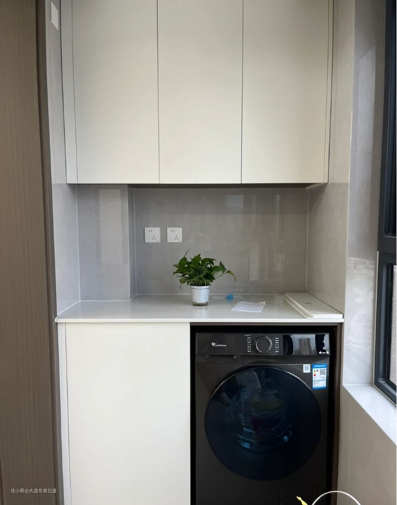 小户型的话,洗衣机可以直接放在阳台上,这样也能让阳台的空间利用起来,让卫生间不显得狭小。