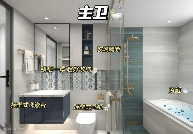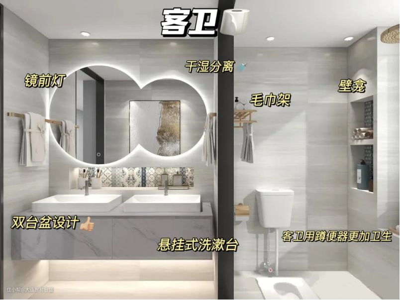 大户型的话,一般都是两个卫生间,那就是可以直接一个改成浴缸和淋浴,而另一个可以改成如厕区,功能分离,也更卫生。