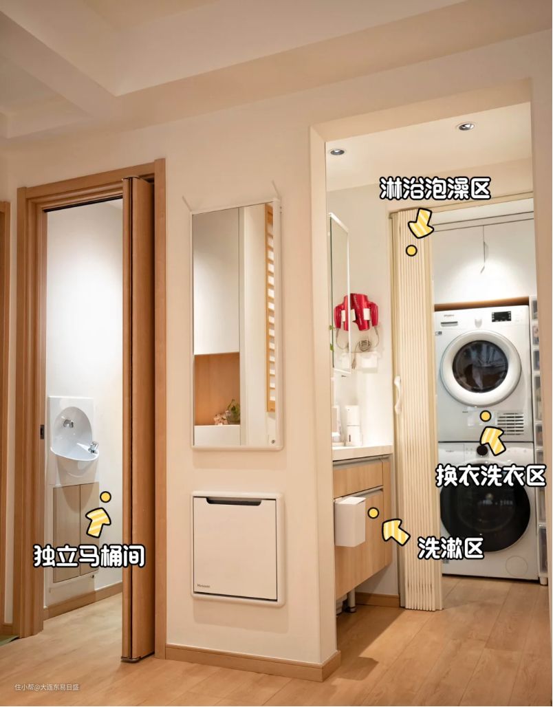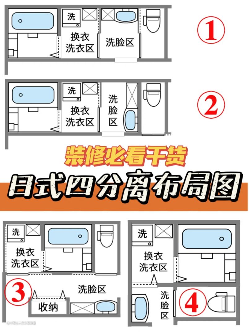 把如厕区、洗漱区、沐衣区、这四个功能场所,直接分成四个地方就是日式四分离布局。