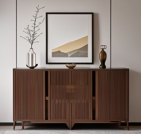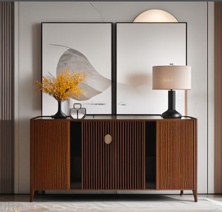 新中式餐边柜在设计上往往采用简约的线条和造型,减少过多的装饰性雕刻,更加注重功能性和空间感。