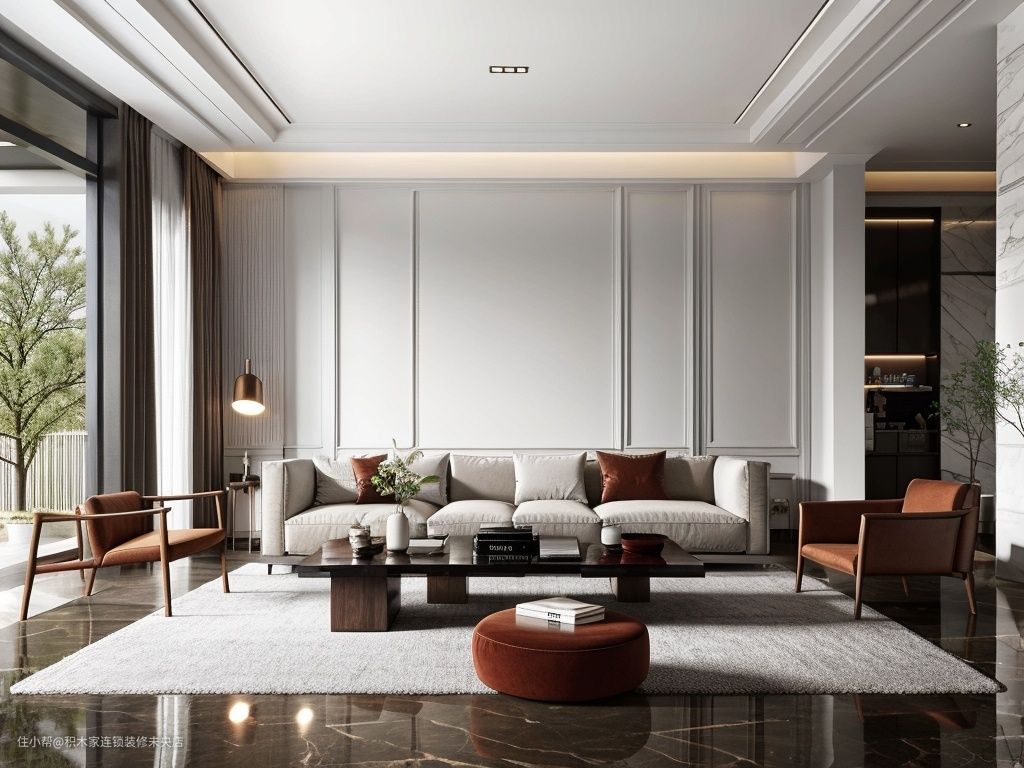 极简风以简洁、明快为主,色彩上主要选择白色、米色、灰色等浅色调,营造出明亮宽敞的空间感。材质方面,可以选用玻璃、金属、石材等现代感十足的材质,再搭配一些棉麻布艺、毛绒等软装,增加舒适度和质感。
