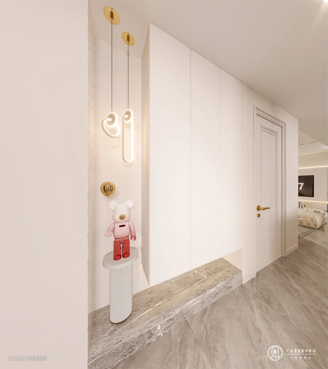 鞋柜做内嵌式悬浮柜设计,让玄关空间更加大气方正。