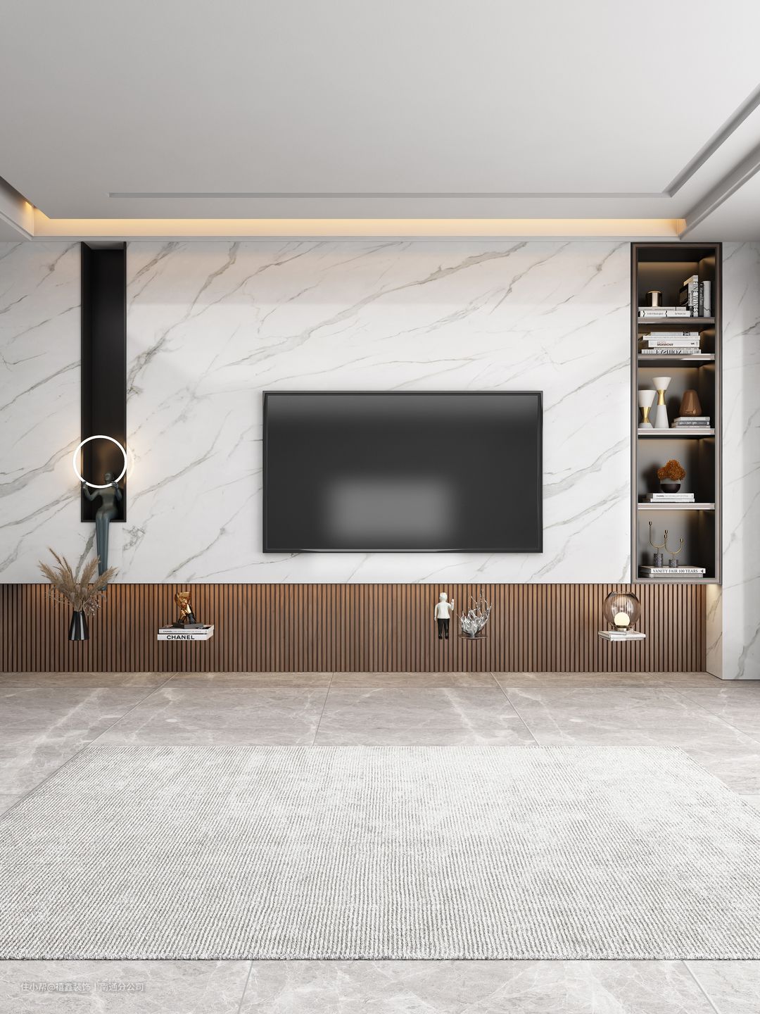 大理石作为高档的电视背景墙材质,具有美观、耐用、易于清洁等特点,且保温性和吸音效果良好。但大理石的价格较高,且需要专业人员安装。