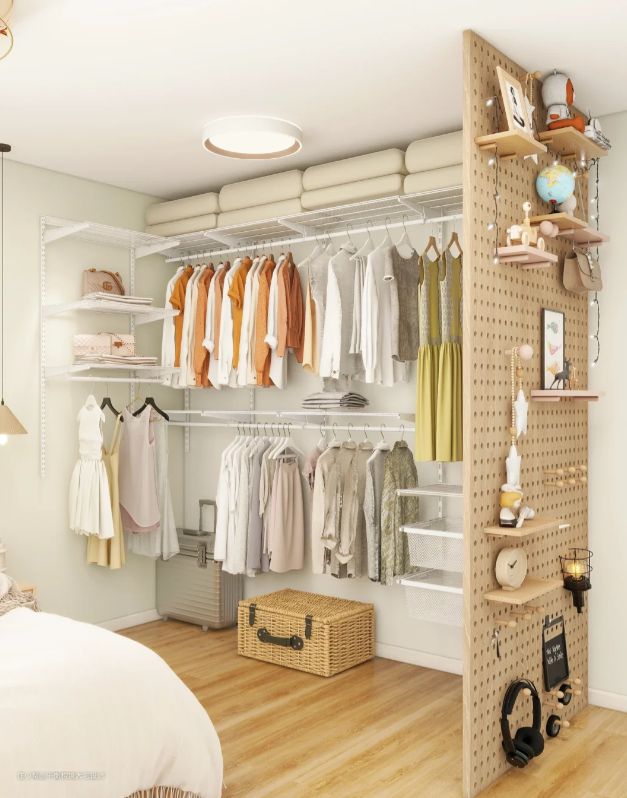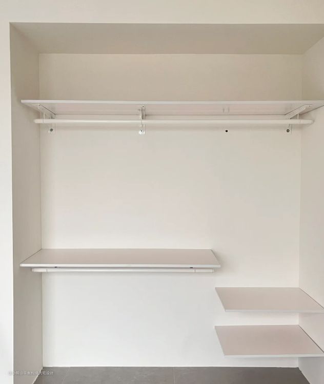 砌墙衣柜通常使用金属衣架、搁板、收纳盒等作为存储工具,造型多样且可选择范围广