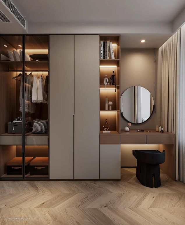 定制衣柜的设计完全根据用户的喜好和需求进行。可以选择板材的色彩、纹理、样式,以及衣柜的结构、布局和细节等。能够与家居风格和个人品味完美融合,打造出独一无二的家居空间。