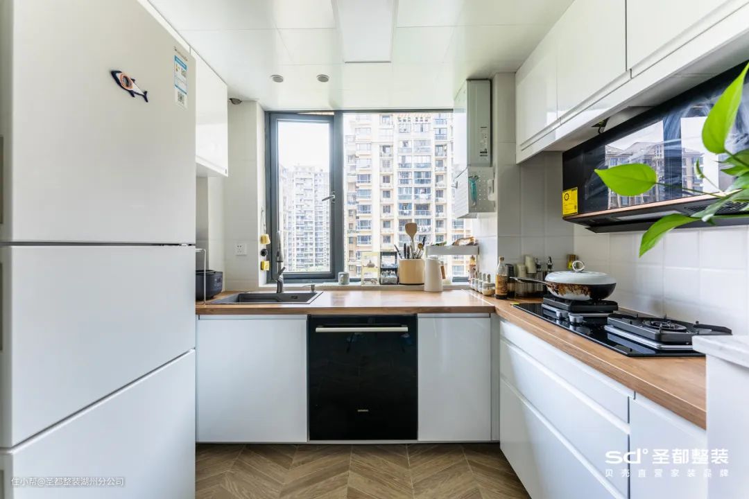 方正的厨房空间可以实现U型布局,在规划时会充分考虑厨房动线设计,洗菜、切菜、炒菜能有条不紊地进行,效率更高。