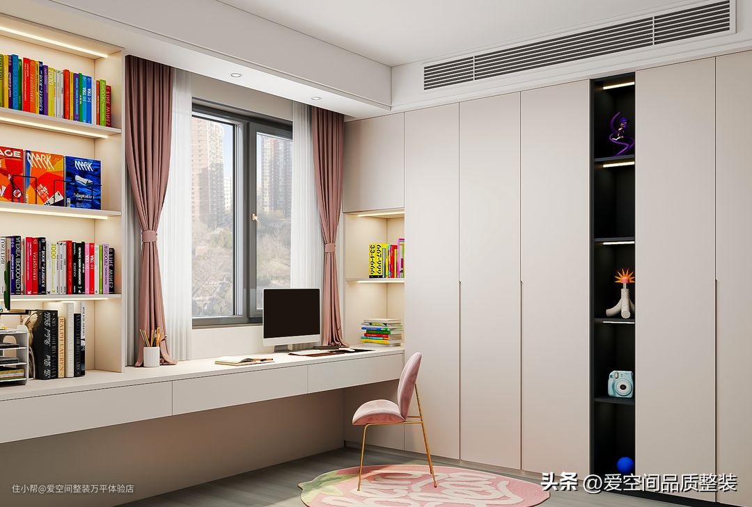 谁说粉色不能轻奢?这家人为女儿装修的房间温馨有书香气!