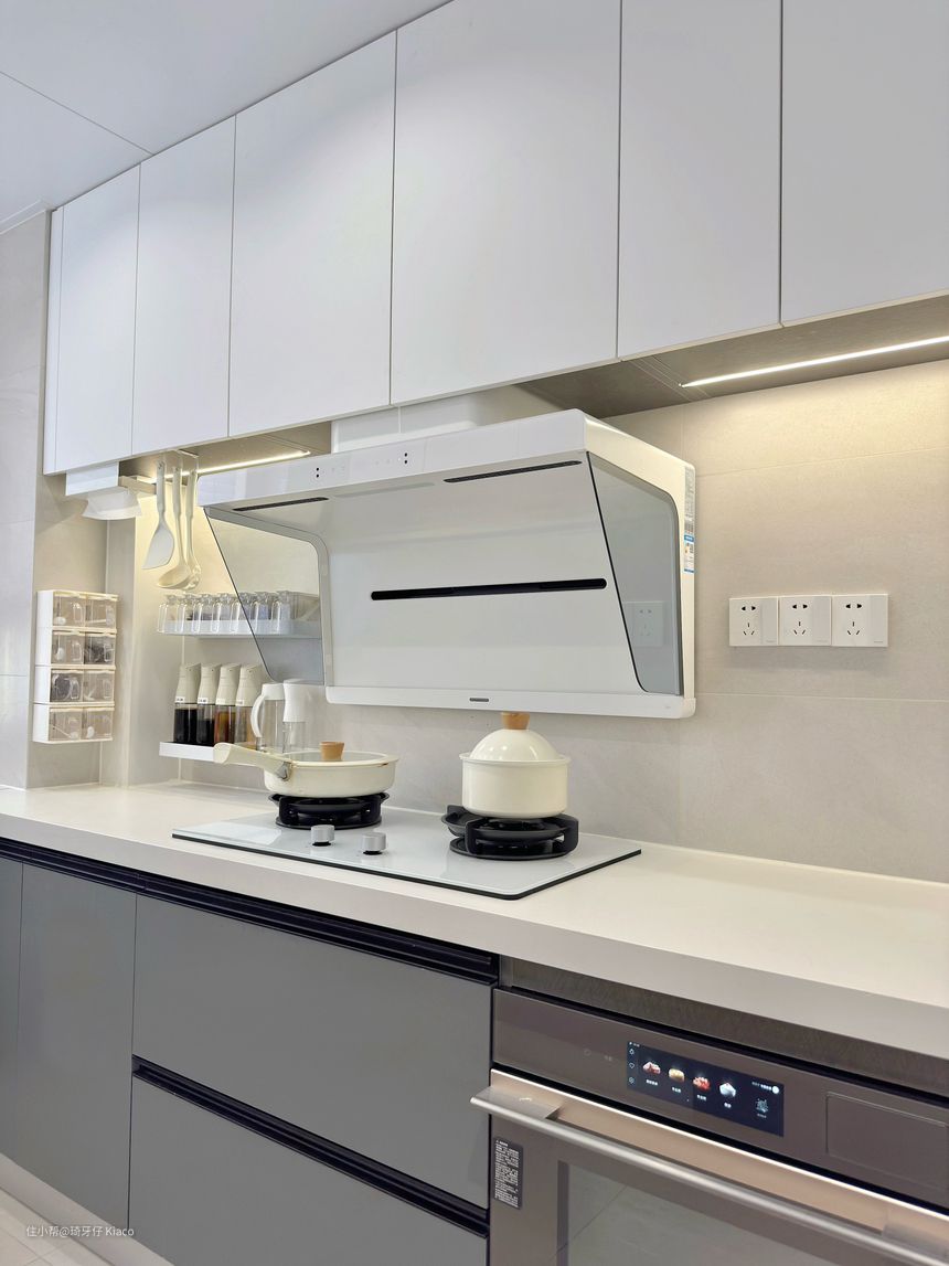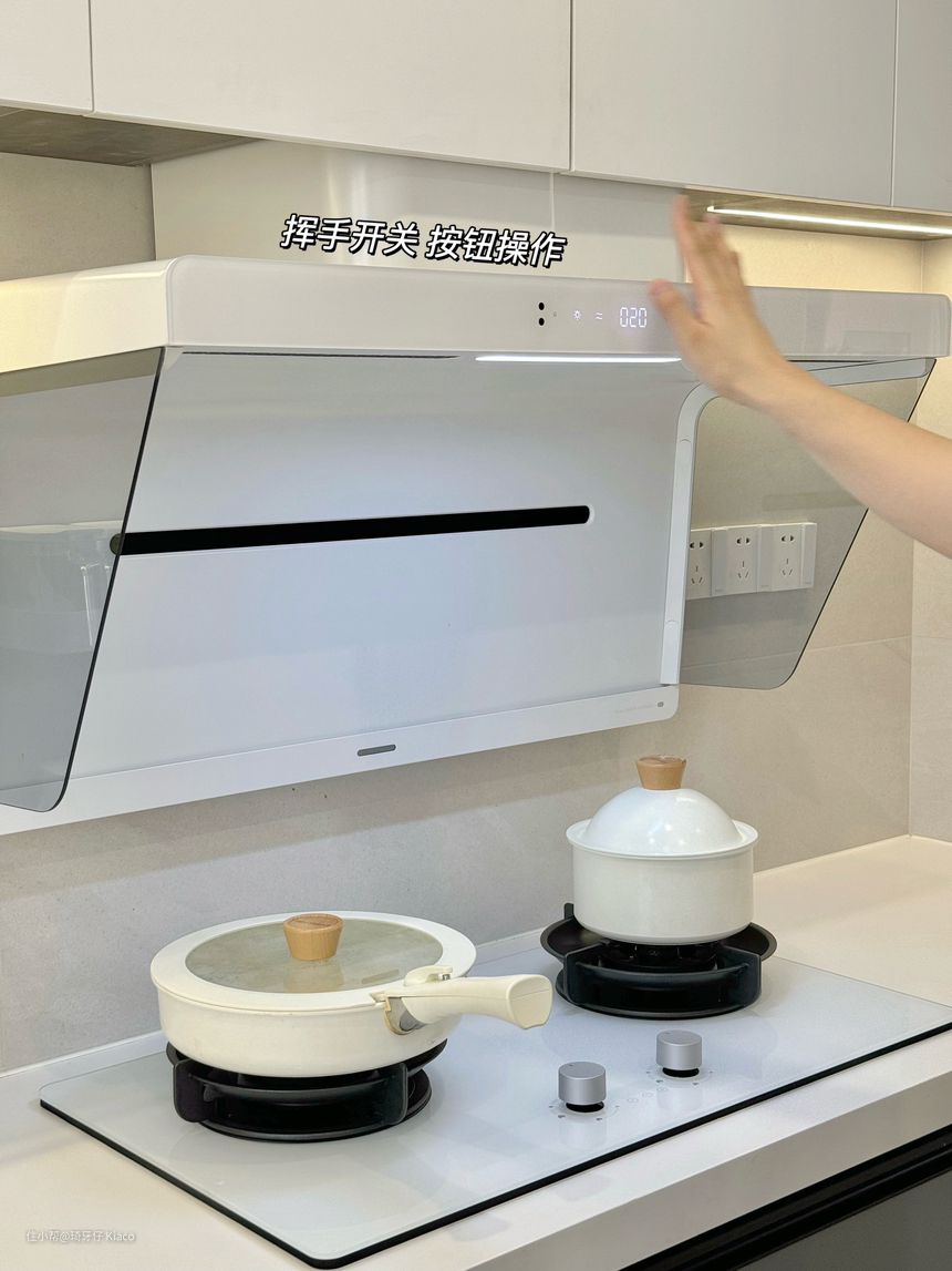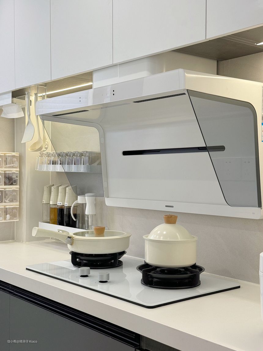 我家设计初期,就很担心半开放式厨房的油烟问题,所以选一台合适的油烟机真的很重要,我选的米家净烟机S2,始于颜值,陷于实力。白色的机身,超好看,安装在厨房整个空间都亮了。