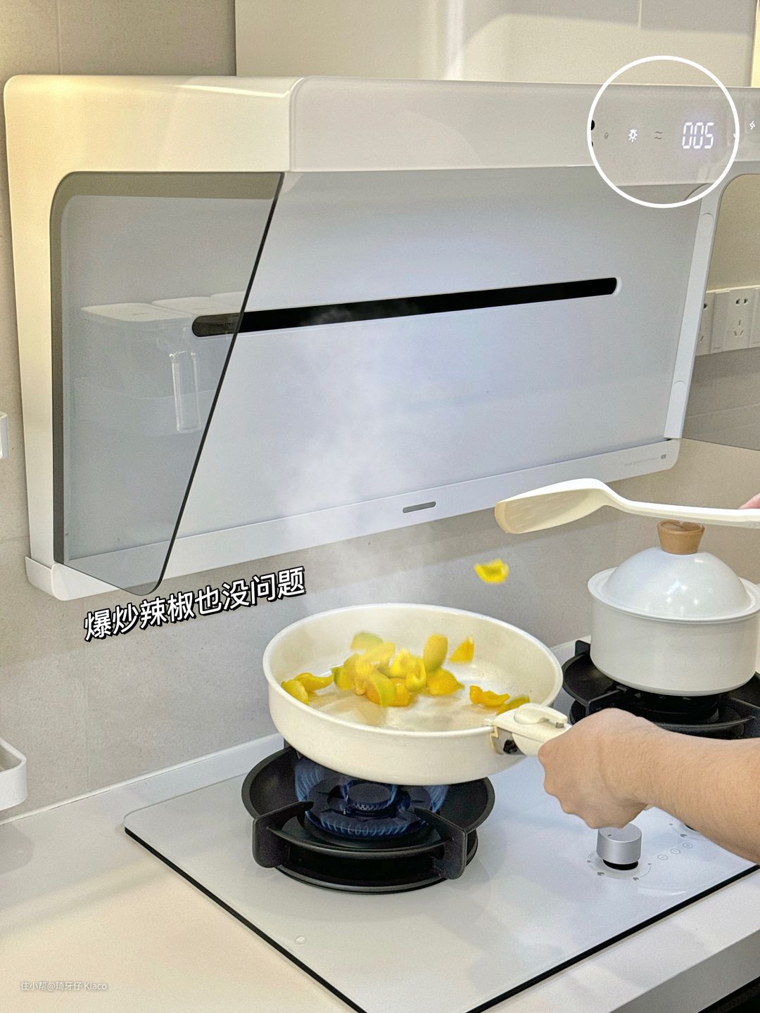 烟机光好看不行,还得有实力,米家智能净烟机S2有国际领先技术,不仅能吸走油烟、油烟味还有看不见的PM2.5有害颗粒物,平常家里主要是母上大人做饭,为了她的身体健康特意选了这款健康油烟机,现在妈妈即使在家爆炒辣椒也闻不到味道,油烟一出现就被吸走了,不让油烟伤害妈妈的皮肤。