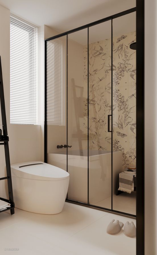 小巧的泡澡浴缸,全方位营造舒压生活,体验身心的放松与惬意。花纹墙砖的更给整个空间增添了浪漫的气氛。