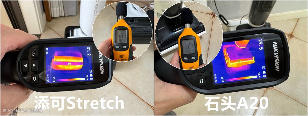不过速干期间噪音相对较高,在 70dB以上,石头A20更是达到了约 76dB ▲
