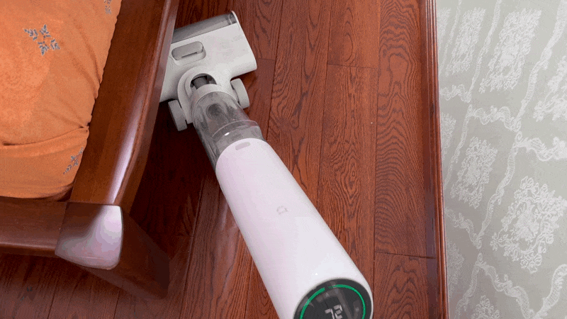 - ③原创「悬浮手柄」(详见上文),配合可「躺平」机身(13.5cm),可以深入床底等低矮家具底部;;