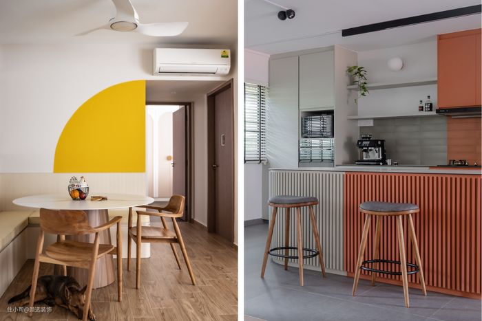 对于普通尺寸的组屋来说,将岛台与餐桌相结合是一个令人惊叹(且实用)的特色。这个餐厅的想法可以根据您的布局进行调整,是连接干湿厨房的好方法,并且更容易上菜。