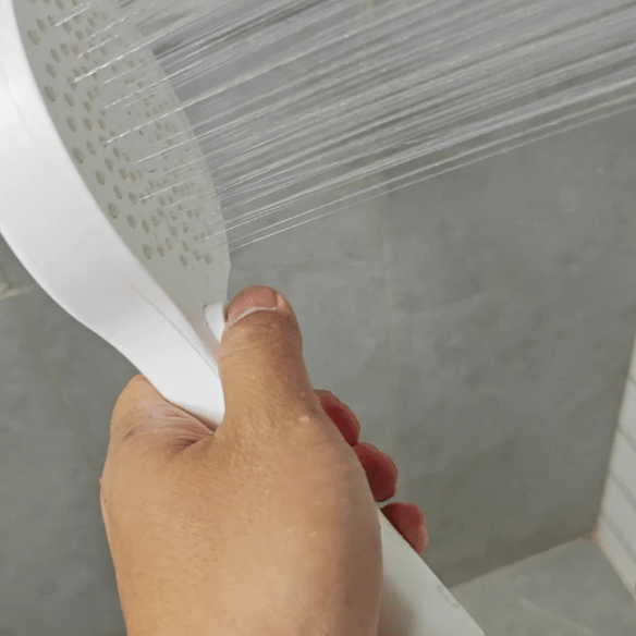 这个手持花洒同时还兼具喷枪功能,手持花洒的水流模式切换很有意思,通过按压下方的按键就可以在增压雨、喷枪普通档和喷枪强力档之间循环切换。