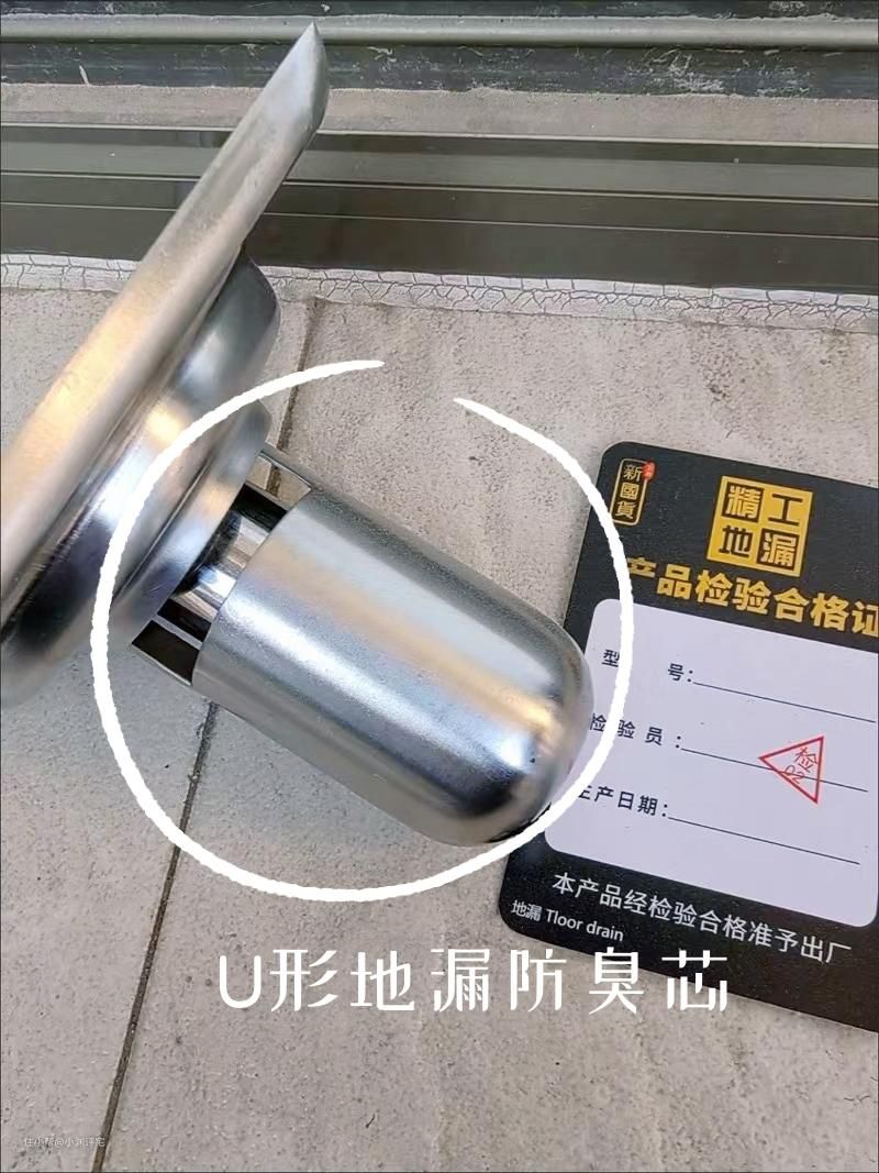 我家是洗衣机排水管直接插在地漏里了,工人说地漏的排水速度不如洗衣机快,所以自然会溢水。接着他把我家地漏的防臭芯拆下来,发现是U形防臭芯▽