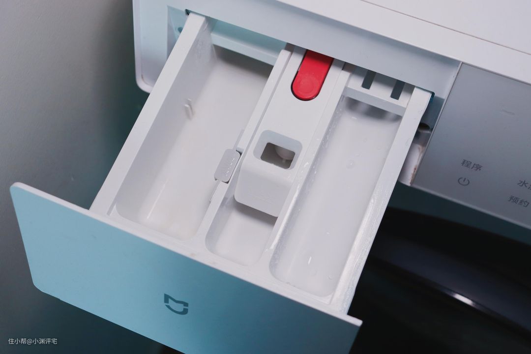 滚筒洗衣机的左上角都会有一个能拉出来的“小抽屉”,它就是洗涤剂盒。顾名思义,所有的洗涤剂都需要倒在这里面,而不是直接倒进洗衣机里。