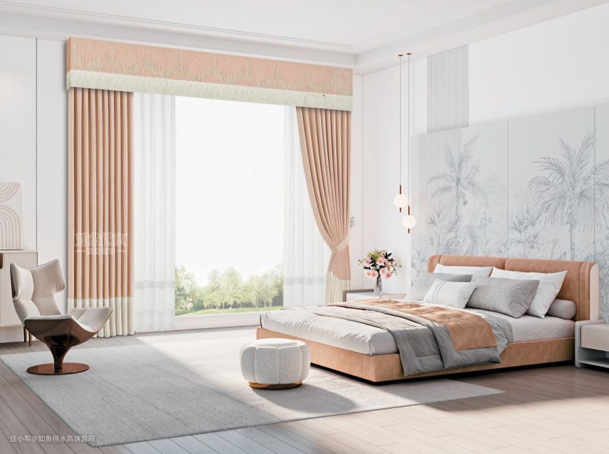 3、若窗帘没有褶皱,美观度会大大降低,一般窗帘的褶皱倍数为2倍即可,看上去更具美感。