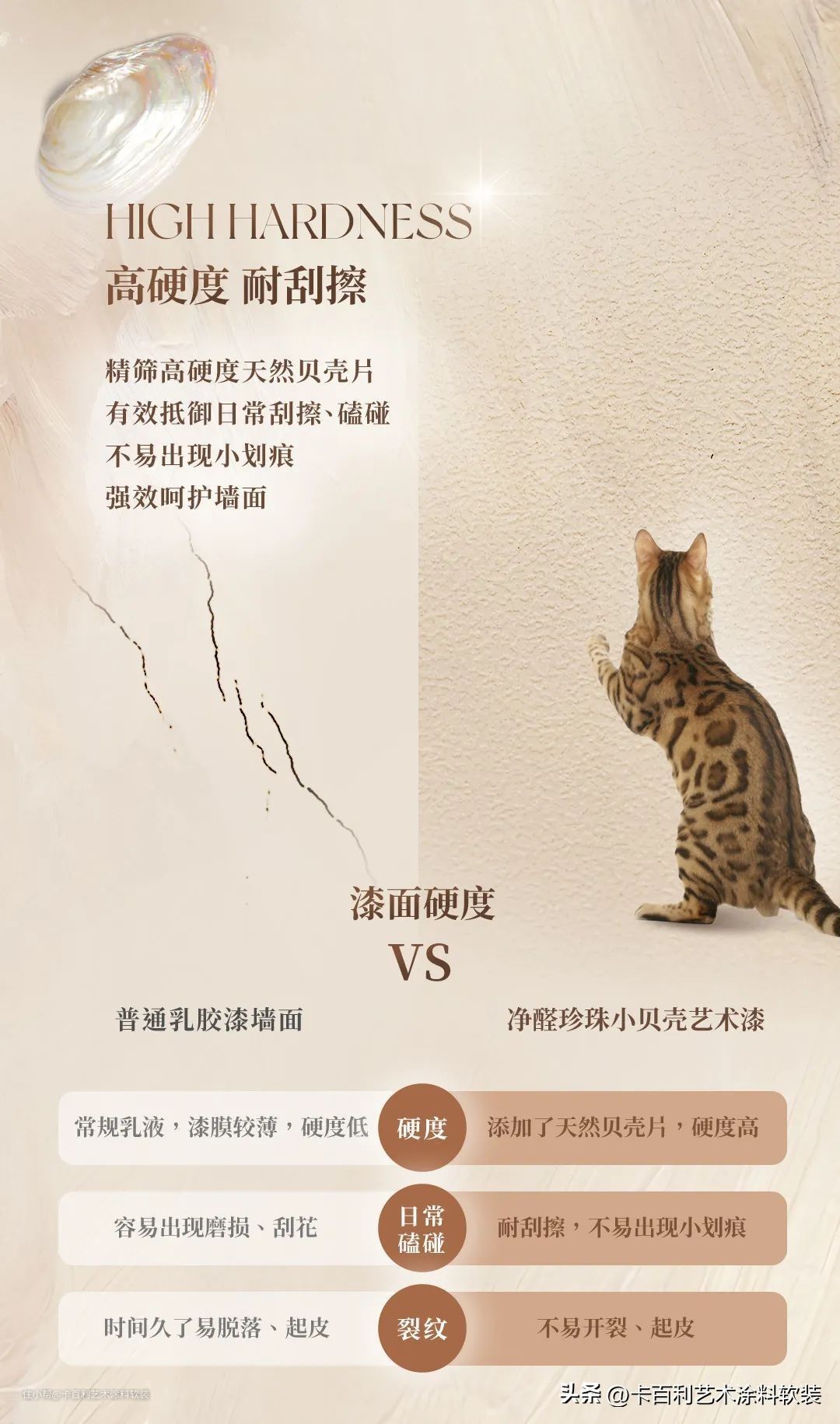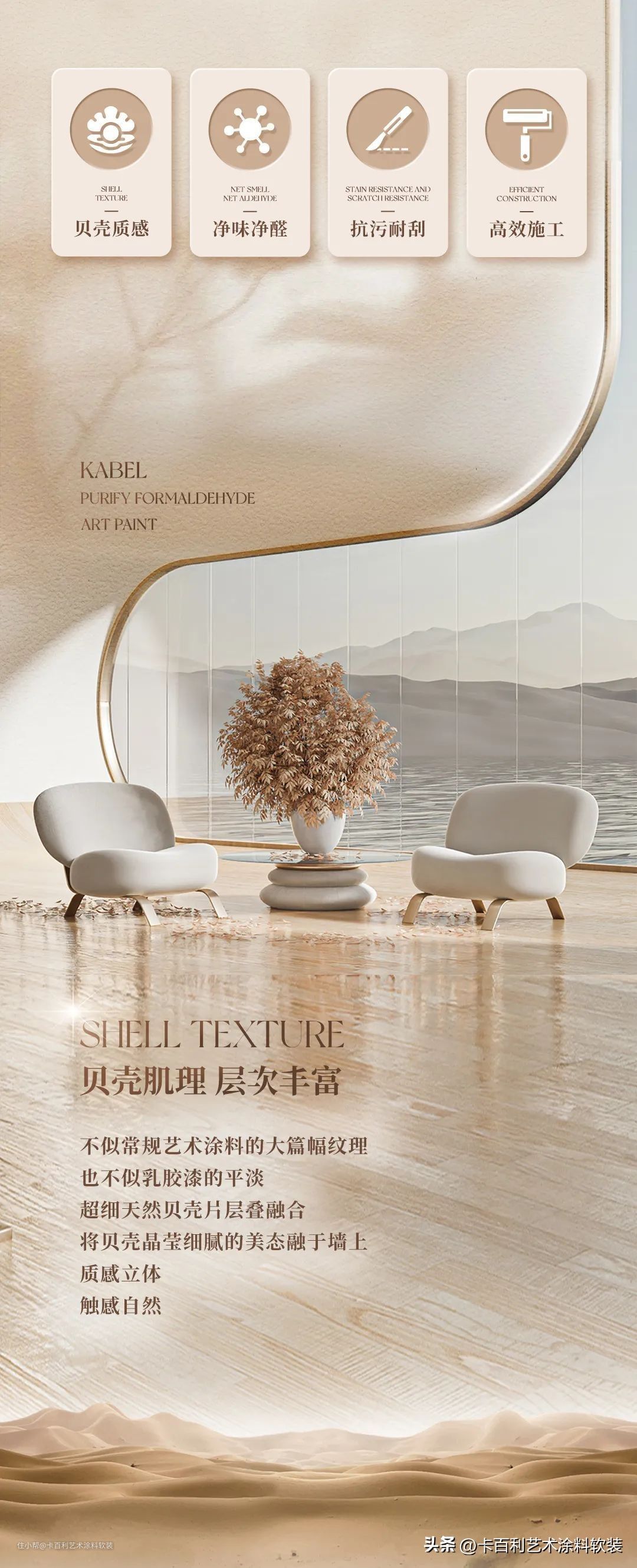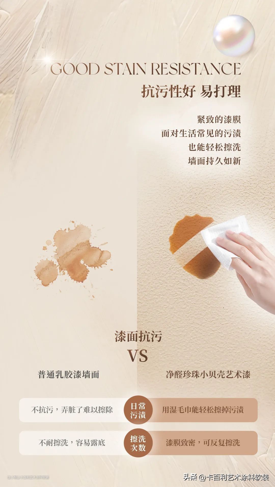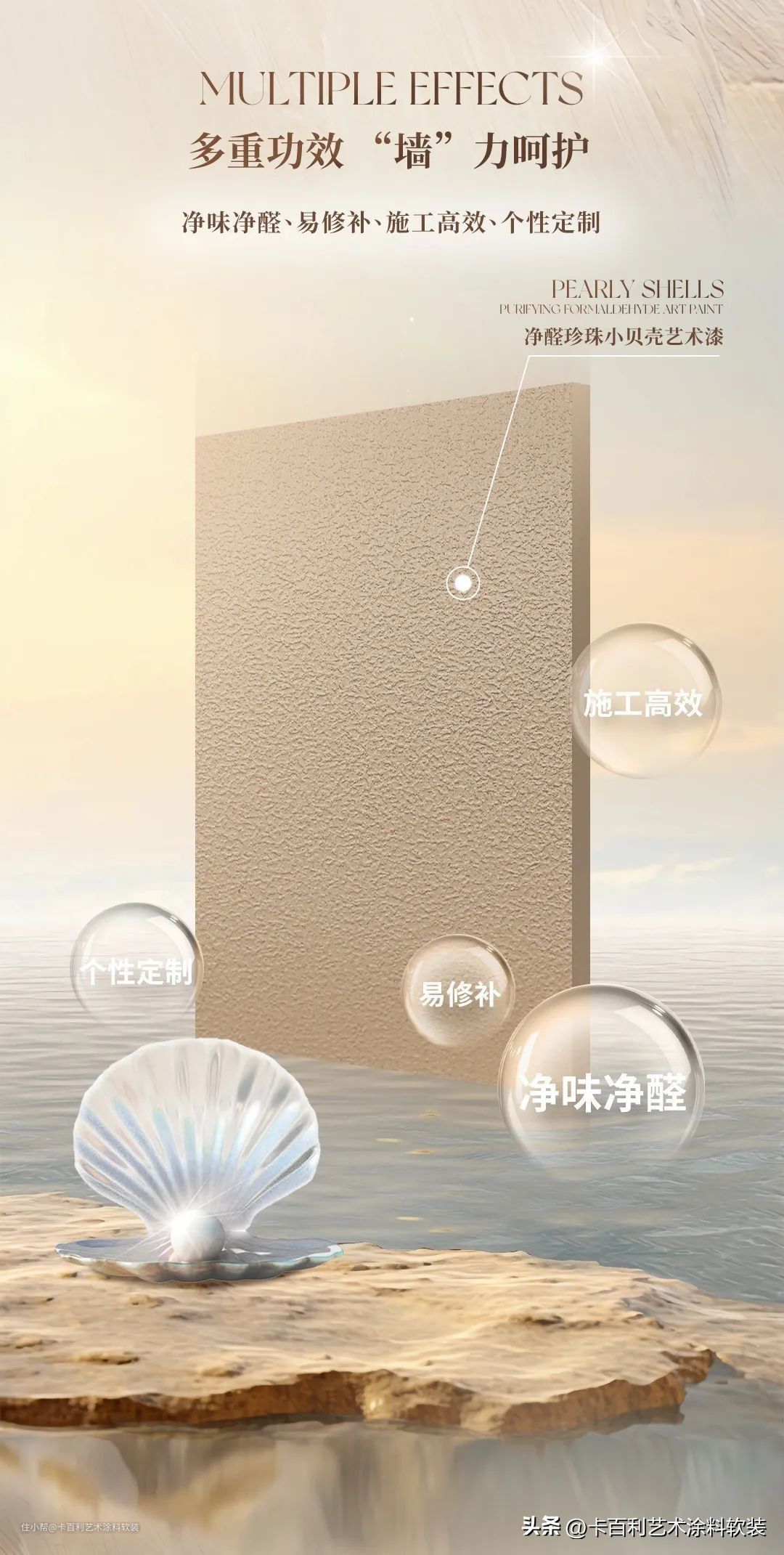 乳胶漆过时了,性价比超高的卡百利净醛珍珠小贝壳艺术漆,美景滚滚来!随着人们对家居环境要求的不断提高,传统的乳胶漆已经无法满足现代家居装修的多样化需求。在这个追求个性化和环保的时代,卡百利净醛珍珠小贝壳艺术漆以其独特的装饰效果和环保性能,正逐渐成为家居装修的新宠。