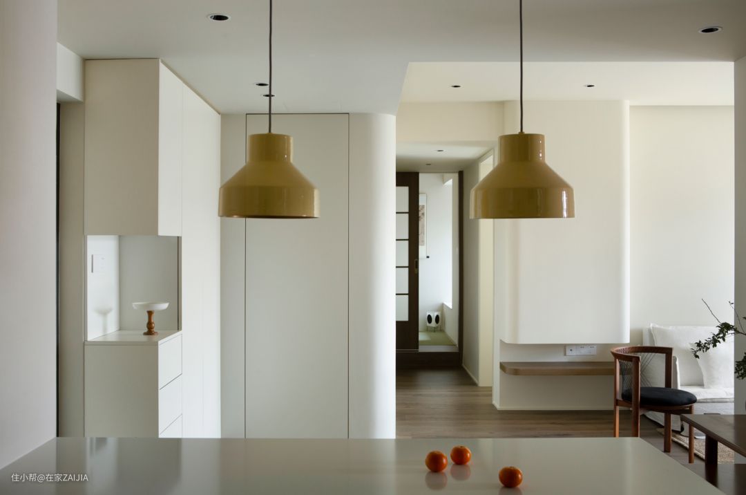 搞定了玄关储物和日常做饭、用餐这些功能性需求之后,其它的空间可以更多地把重点放在“空间情绪”的把控上,传达出他们的生活理念。