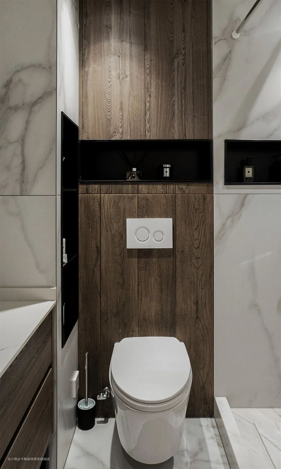 主要是马桶旁的壁龛、或者浴巾架,以及马桶边卷纸盒的安装尺寸,马桶旁壁龛一般离地高度1000mm左右,方便拿取物品。